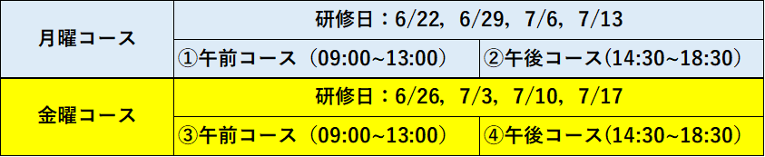 【対面研修日程】(以下4コースからいずれか)※最終日に認定試験を実施