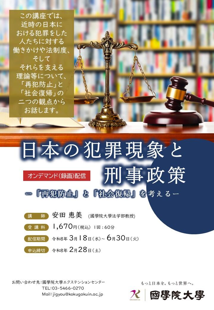 國學院大學 オンライン公開講座 日本の犯罪現象と刑事政策―「再犯防止」と「社会復帰」を考えるー