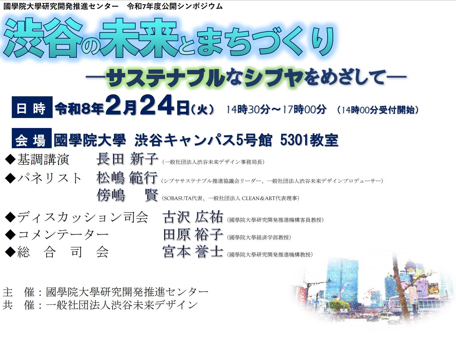 【國學院大學】令和7年度公開シンポジウム「渋谷の未来とまちづくり-サステナブルなシブヤをめざして-」