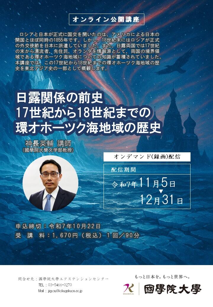 【國學院大學】オンライン公開講座 日露関係の前史 17世紀から18世紀までの環オホーツク海地域の歴史- 開催日程