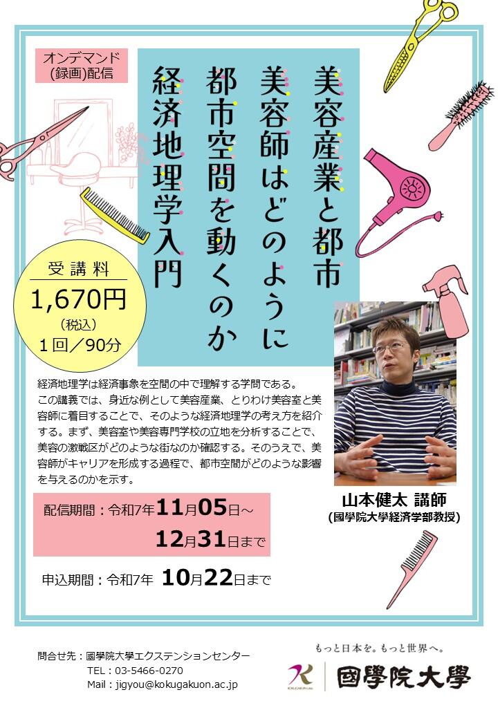 【國學院大學】オンライン公開講座 美容産業と都市 美容師はどのように都市空間を動くのか 経済地理学入...- 開催日程