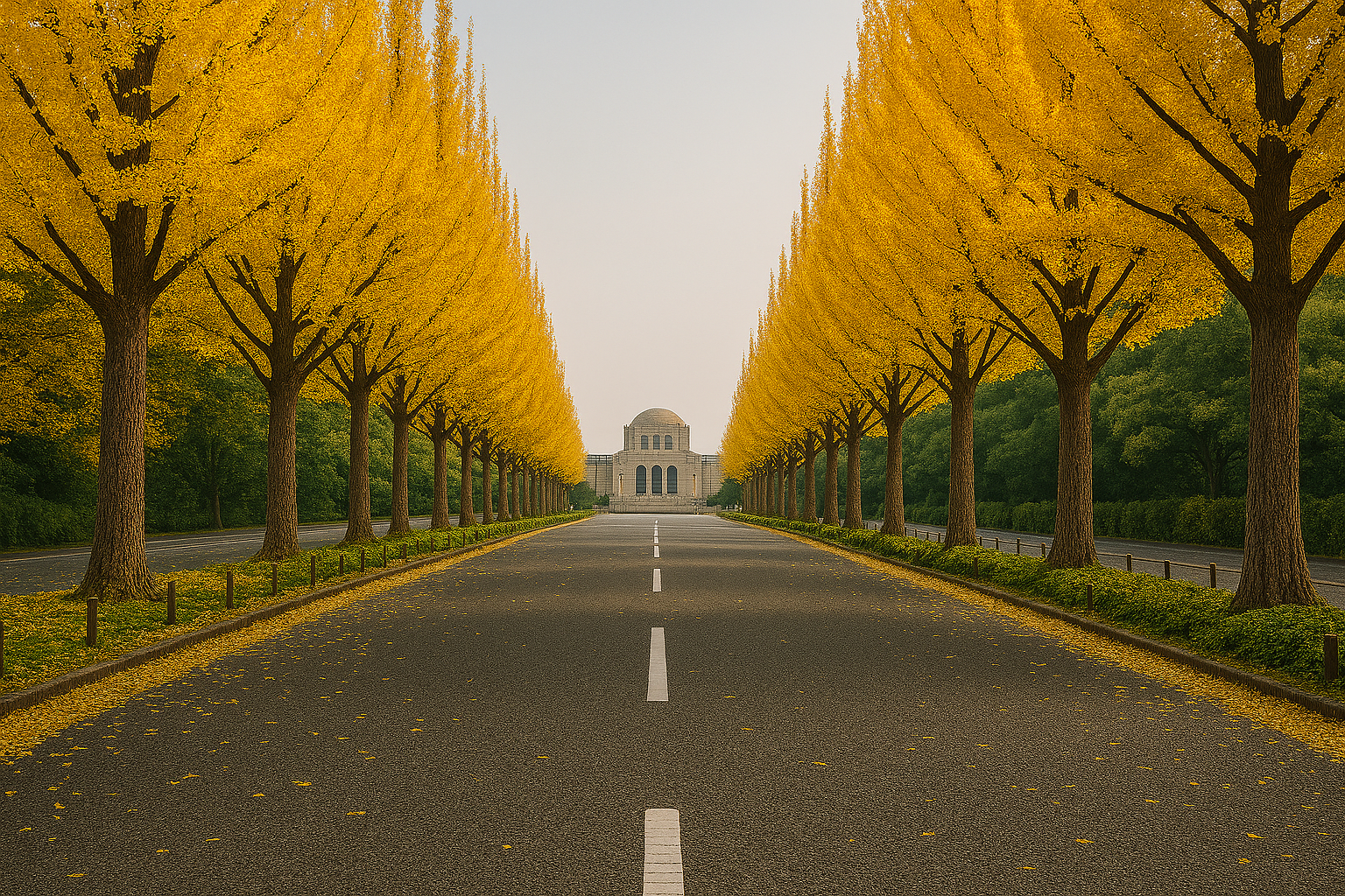 外苑イチョウ並木と鳩森八幡神社