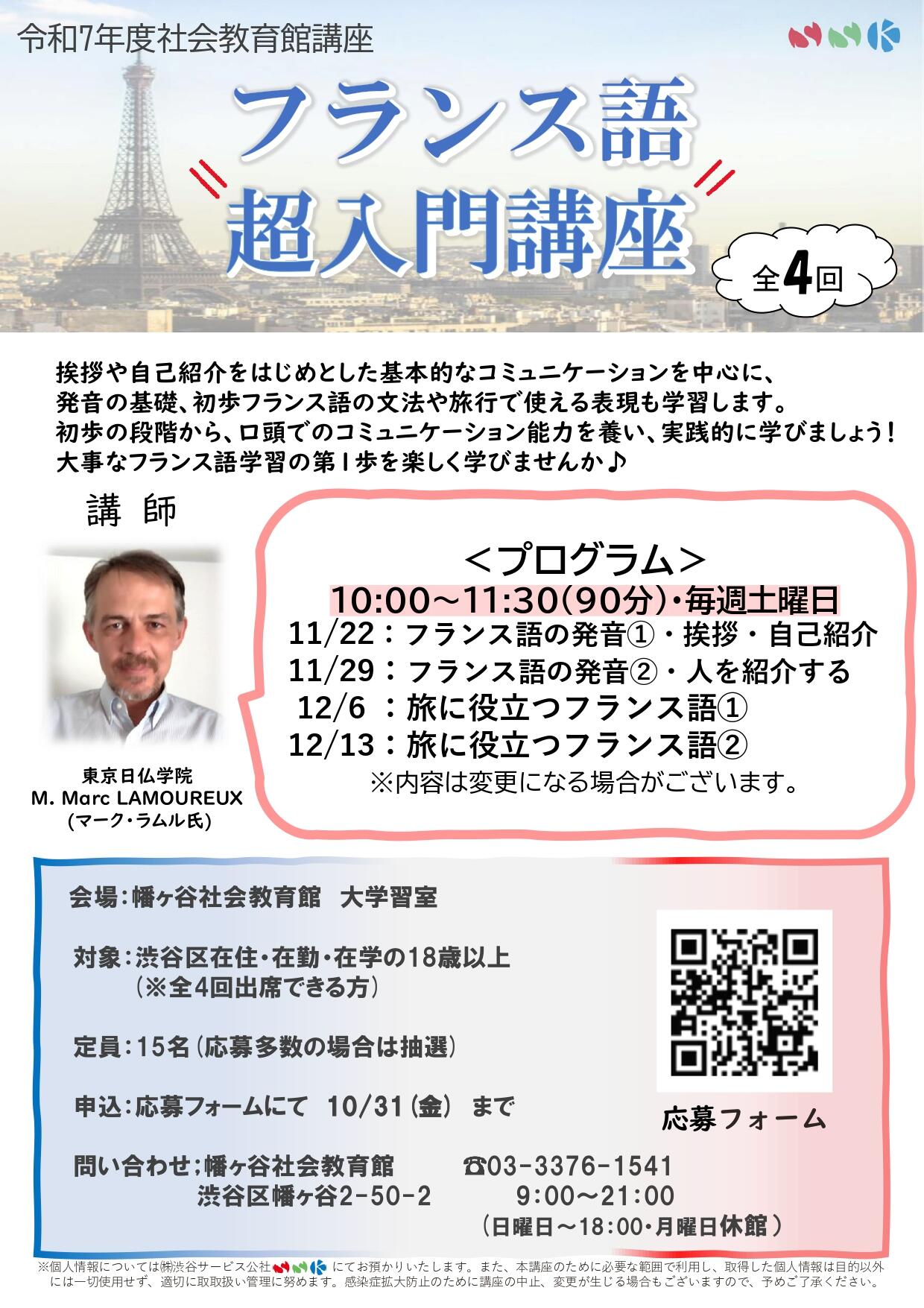 令和7年度 社会教育館講座「フランス語 超入門講座」